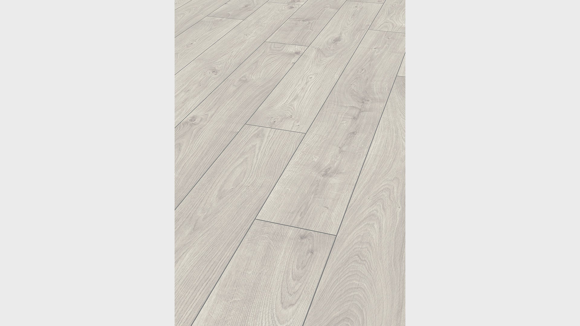 Eurostyle Atlas Oak White Laminate is a flooring that is as noble and natural as wood. It is perfection itself, radiates warmth and comfort, and is as pleasant to walk upon as solid wood. Its synchronised, embossed grain and the matt surface shimmer give it an authentic structure and create a warm, natural atmosphere. And the carefully milled V-groove also contributes to the typical, representative floorboard look.