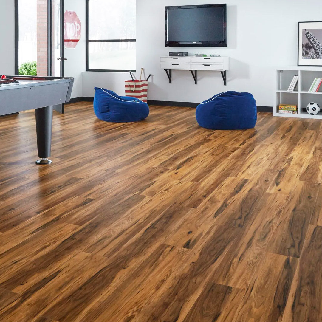 Tarkett ProGen Spicebark Hickory Comino Luxury Vinyl Flooring is designed to stand up to the demands of modern life and whatever is thrown, dropped, spilled, or scraped on it. Because this luxury vinyl flooring is durable, waterproof, dimensionally stable, and easy to install, it can be used in any room, including all-season rooms with extreme temperature changes and rooms that are most prone to moisture and spills, like kitchens and baths.
